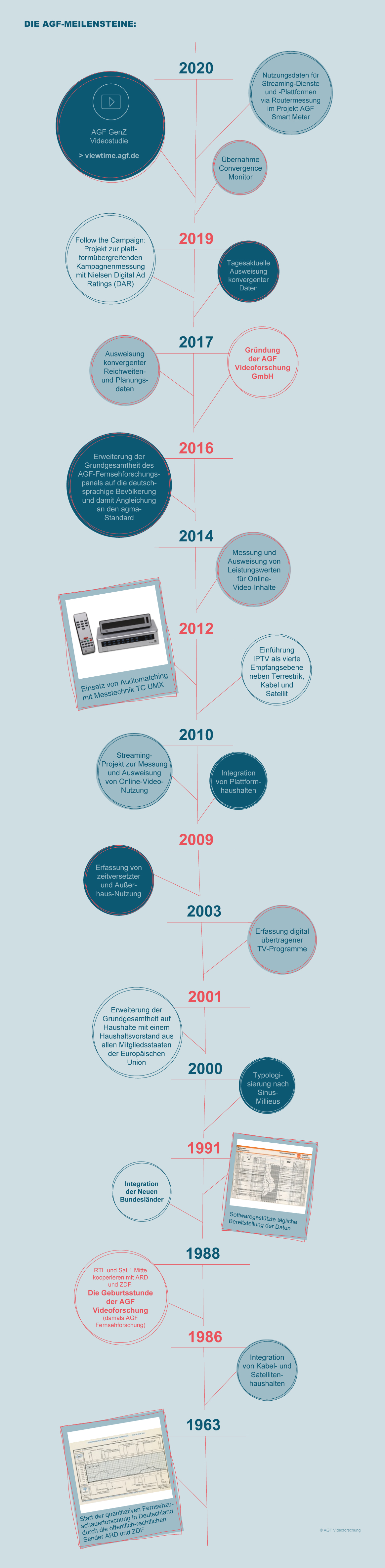 Seither hat sich der Bewegtbildmarkt mit zunehmender Dynamik weiterentwickelt. Für den größten Schub sorgt seit der Jahrtausendwende die Digitalisierung. Die AGF steht vor der Aufgabe, die Veränderungen des Medienmarktes in ihrem Forschungssystem möglichst schnell, aber mit der nötigen methodischen Präzision und Zuverlässigkeit abzubilden. Im Jahr 2017 wird die AGF zur eigenständigen AGF Videoforschung GmbH, an der mittlerweile zehn Gesellschafter beteiligt sind.
