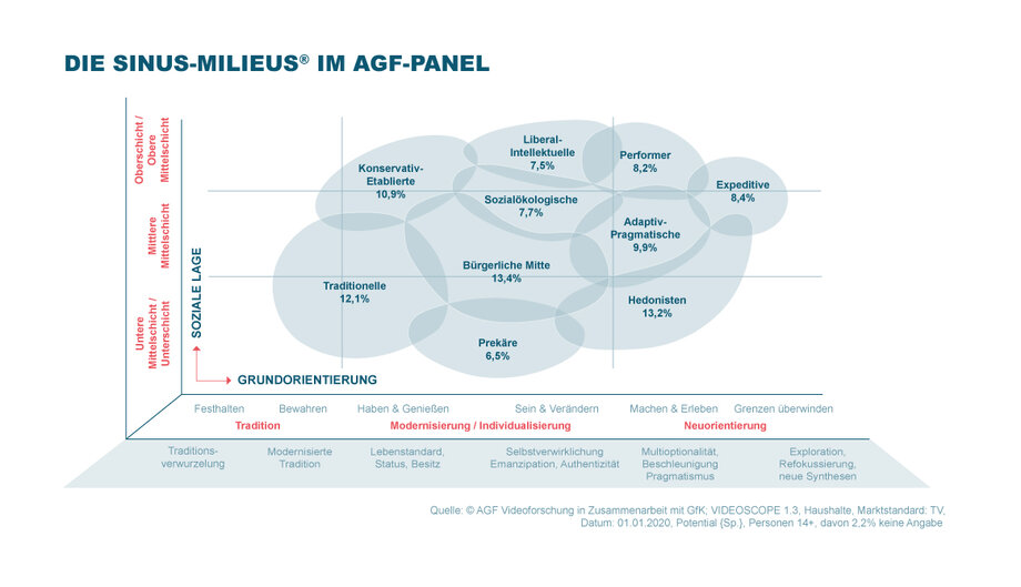 Die Sinus-Milieus® sind das Ergebnis von über 35 Jahren sozialwissenschaftlicher Forschung. Das Heidelberger Sinus-Institut erkundet und beschreibt die Alltagswirklichkeit der Menschen und entwickelt daraus soziokulturelle Zielgruppen. So segmentiert das Modell der Sinus-Milieus® die Bevölkerung nach Wertorientierungen, Lebensstilen, ästhetischen Präferenzen und sozialen Lagen.