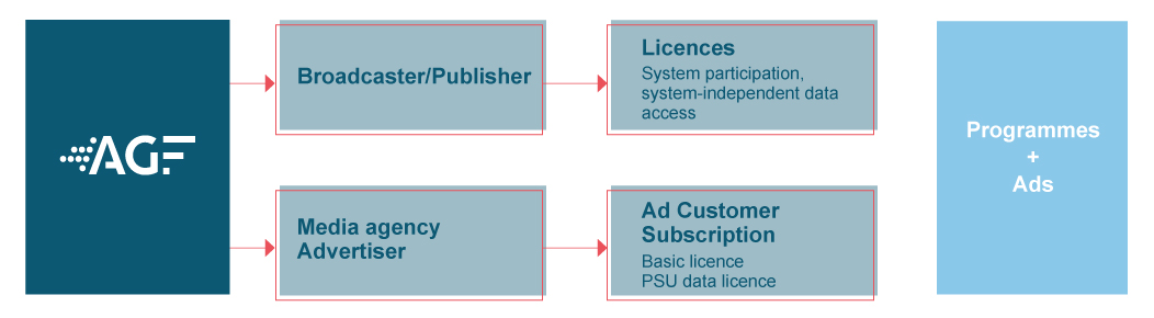 The ad customer subscription is addressed to media agencies and advertisers and permits the regular purchase of AGF data for the ad market. It is are modular in structure and so allows the data purchase to be tailored for specific evaluation needs.